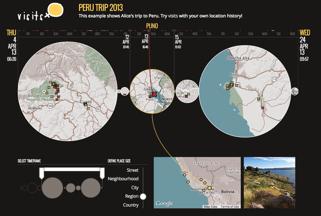 Turning geolocation histories collected during travel into a visual artifact that can be used for reminiscing and social sharing.