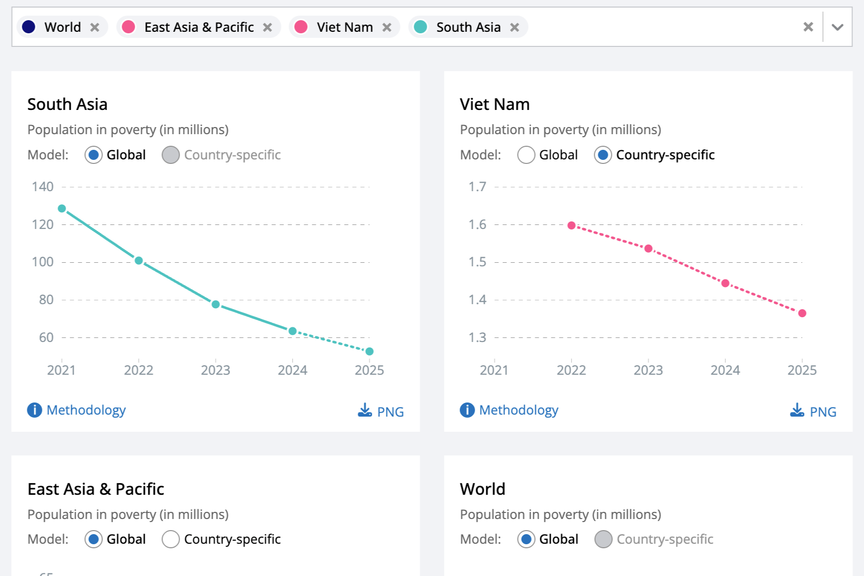 Visualization & UI Design for a dashboard that compares the most recent trends and predictions of poverty rates measured by the World Bank.